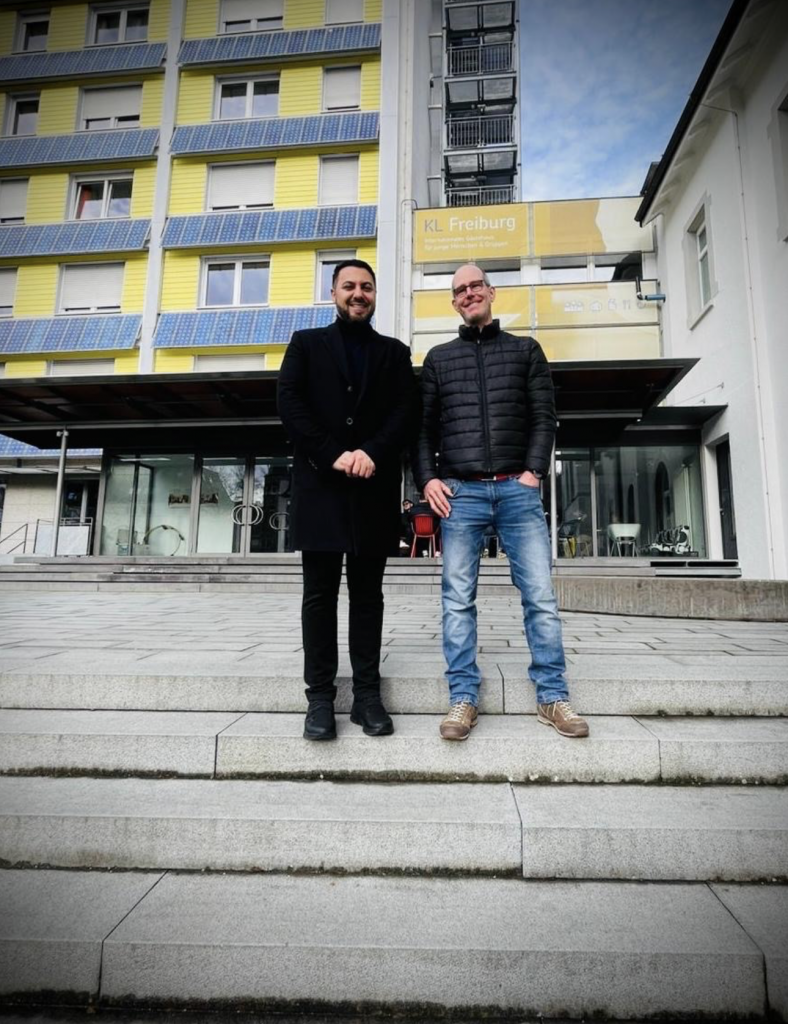 Anlässlich einer Dienstbesprechung der Schulbeauftragten der Erzdiözese Freiburg reisten die Eislinger Lehrer Dr. Josef Önder und Dirk Schwarzenbolz bis ins schöne Freiburg. Sie waren eingeladen, um dort die Literaturwerkstatt „Schreibende Schule“ vorzustellen. Die beiden Eislinger trafen auf ein sehr interessiertes Publikum und stellten ihre bisher publizierten Werke mit jeweiliger Entstehungsgeschichte vor. Besonders beeindruckt zeigten sich die Zuhörer vom Engagement der Eislinger Schüler/innen, die mittlerweile gemeinsam mit ihren Lehrkräften immerhin 15 Büchern publiziert haben – vom Jugendroman bis zum Bilder-Buch. Auch die von Jugendlichen mitverfassten Gebetbücher fanden großen Anklang, ebenso die „Gebet-Mitmach-Aktion“, welche im Rahmen eines Workshops angeboten wurde.